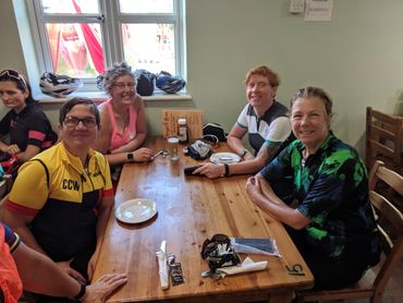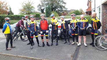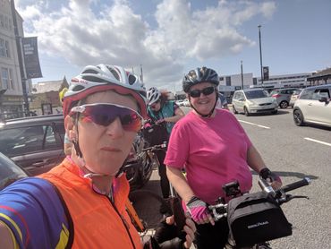 10. Terry's bike had rear tyre / brake problems. The rest of us kept warm inside a bus shelter for 30